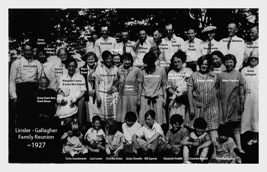 - Seated at far left is Anna Clark Elmer, sister of Great Great Grandma Eliza Clark Gallagher (1838-1839).