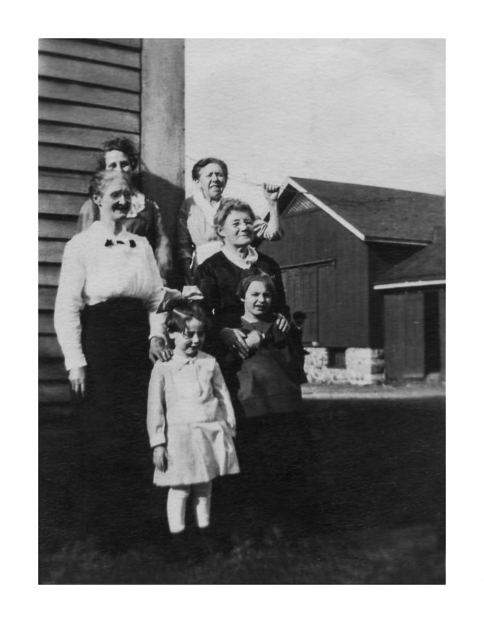 Great Grandma "Annie" Gallagher Linsler, left in white blouse. Possibly May Linsler, partially hidden behind her.