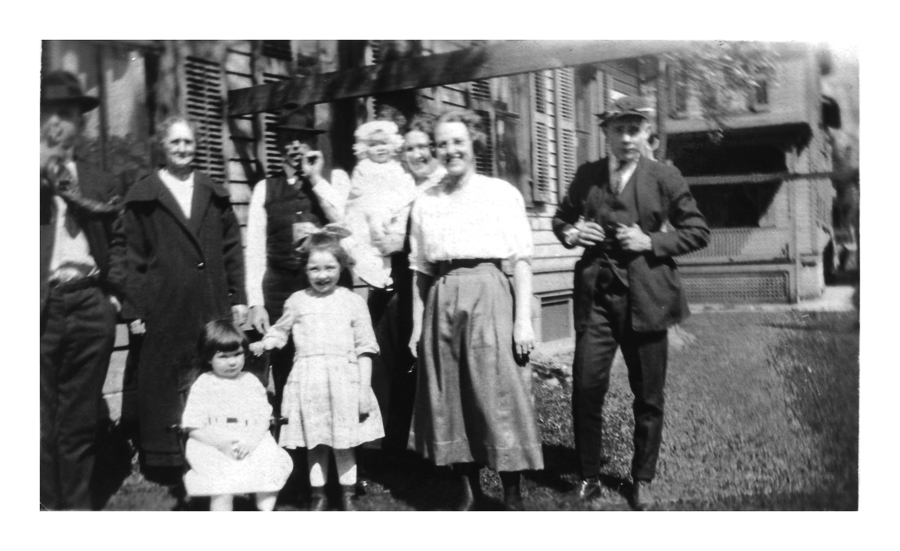 probably Great Grandpa John Linsler, Emma Linsler Powell holding baby Charlotte, May Linsler,