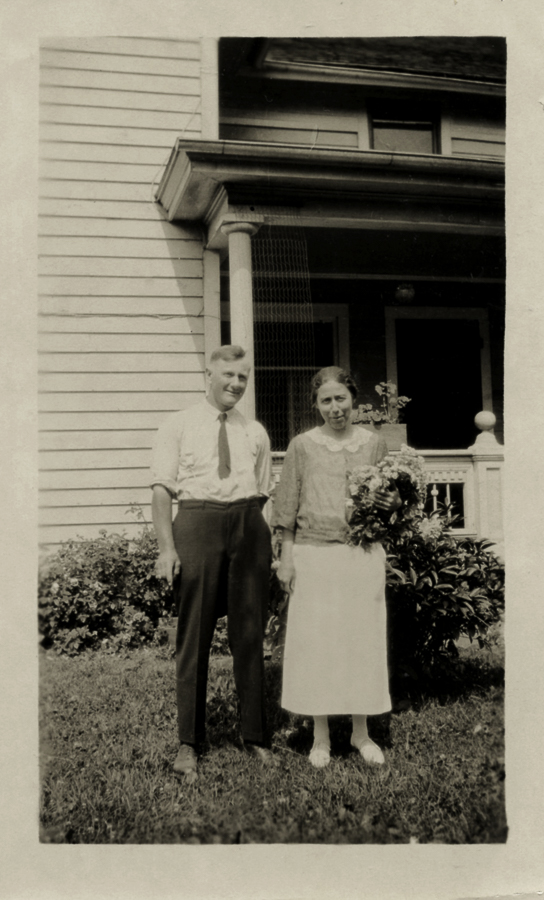 Adelbert Herman Goodemote & Mary Alida Kruse Goodemote in front of their home in West Valley NY