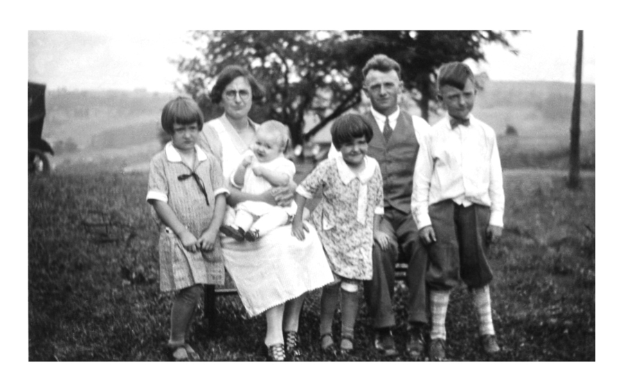 Believed to be Great Aunt Nora Goodemote Schumacher, & Uncle Aloysius Schumacher, and children: Mary, baby Betty Jane, Genevieve, and Joseph.