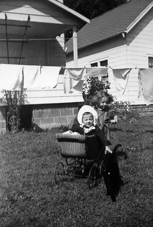 Playing in Grandma Goodemote's backyard, apparently on laundry day.